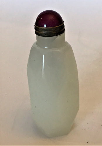 Snuff Bottle: Multi-Facetted White Glass Bottle imitating Nephrite