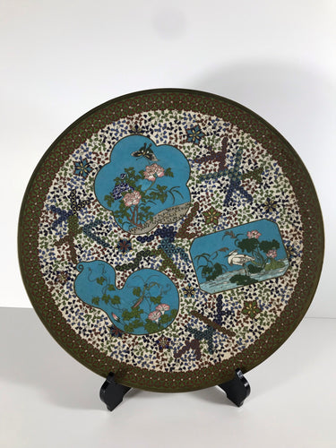 Early Japanese Cloisonne Charger with Flora and Fauna